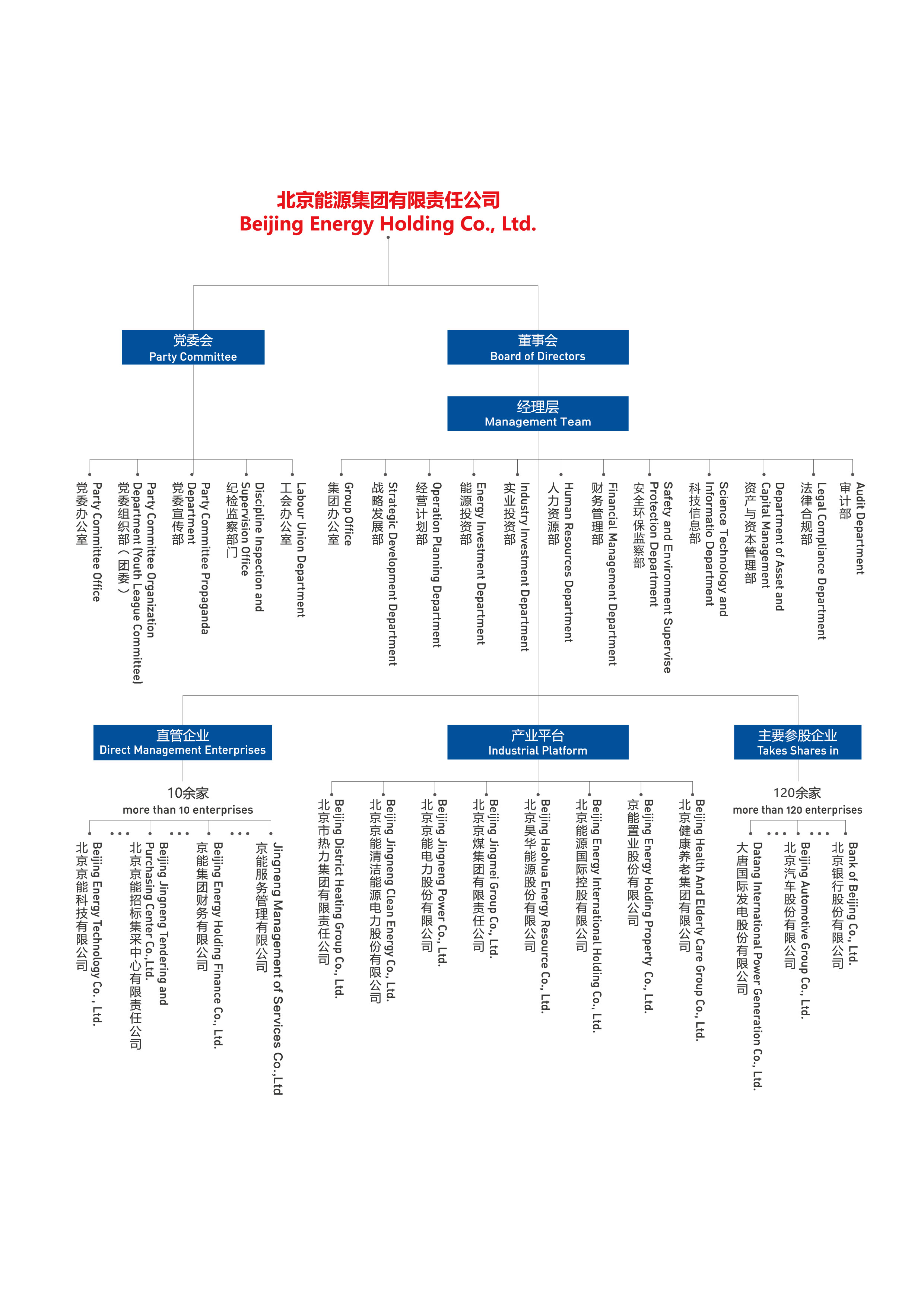 截至2024年底,集團(tuán)資產(chǎn)規(guī)模達(dá)到 4934 億元,年?duì)I業(yè)收入超過 975 億元,全資及控股企業(yè)860余家,參股企業(yè)120余家,擁有京能清潔能源(00579.HK)、京能電力(600578.SH)、昊華能源(601101.SH)、北京能源國(guó)際(00686.HK)、京能置業(yè)(600791.SH)、京能熱力(002893.SZ)六家上市公司,水平長(zhǎng)期穩(wěn)居北京市屬企業(yè)前列。電力裝機(jī)規(guī)模達(dá)5490萬(wàn)千瓦,其中可再生能源裝機(jī)規(guī)模達(dá)2738萬(wàn)千瓦、占比49.88%,電力裝機(jī)規(guī)模和可再生能源裝機(jī)規(guī)模均位列地方能源企業(yè)前列。核準(zhǔn)煤炭產(chǎn)能2730萬(wàn)噸/年。供熱面積6億平方米,其中,北京市供熱面積超4億平方米,占首都核心區(qū)供熱市場(chǎng)的80%以上。