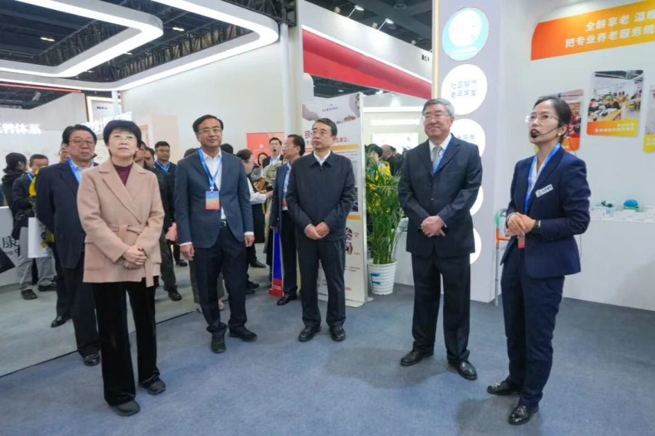 展會期間,郭明星與北京市政府及市民政局、市老齡產業協會等單位與會領導一同來到北京康養展區,詳細了解了北京康養的產業發展情況和未來發展規劃,重點察看了居家養老、機構養老、旅居養老、適老化設施等特色產品的展示內容。